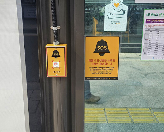 | ▲ 버스정류소(숙명여대입구) ‘안심벨’ 설치 사진. (사진=용산구청 제공) |