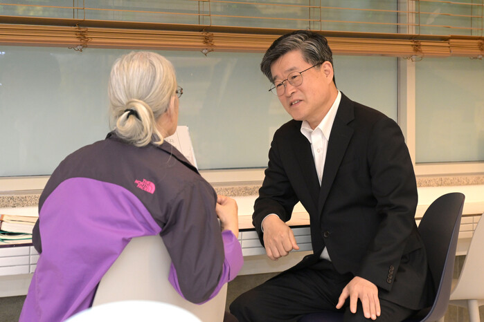 | ▲ 김길성 구청장이 노인과 이야기를 하고 있다. |