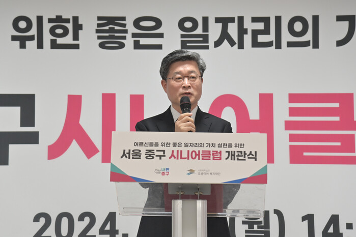 | ▲ 중구 시니어클럽 개관식에 참석한 김길성 구청장이 인사말을 하고 있다. |