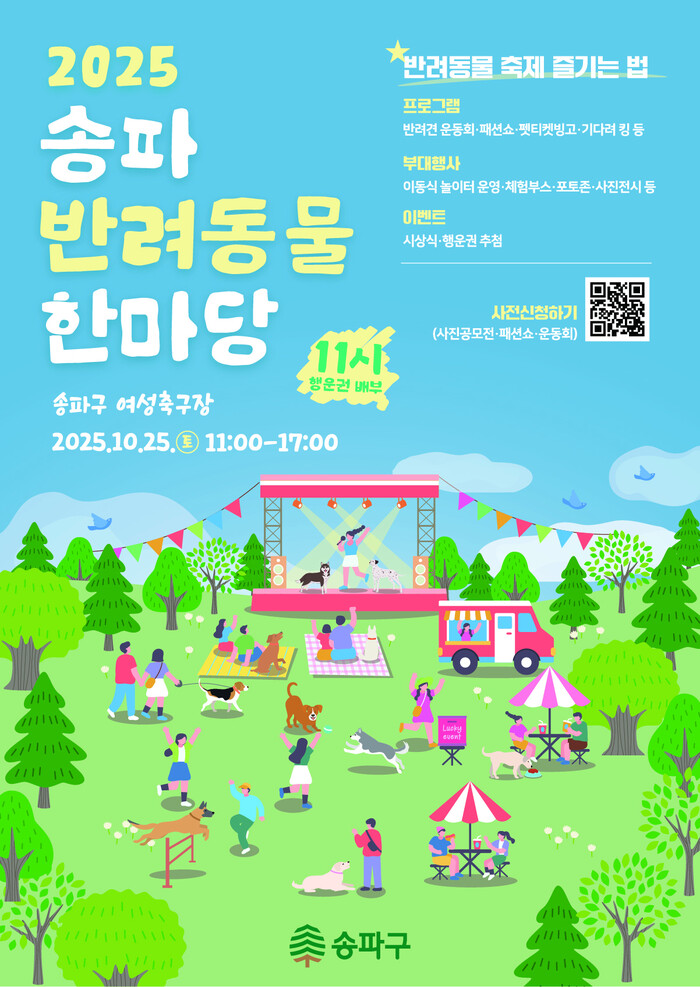 서강석 송파구청장은 “아름다운 가을날 사랑하는 반려동물과 뛰놀며 즐겁고 행복한 추억 만드시길 바란다”라며, “앞으로도 반려동물과 사람이 모두 행복한 도시, 반려문화 선도 도시로 나아가기 위해 다양한 사업을 펼치겠다”라고 전했다.