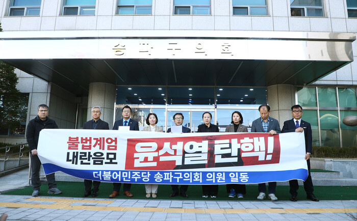 [시민일보 = 이대우 기자] 서울 송파구의회 더불어민주당 의원들은 윤석열 대통령의 비상계엄령 선포에 대한 규탄 기자회견을 열고 대통령의 즉각적인 퇴진과 관련 책임자 처벌을 촉구하는 성명서를 냈다.