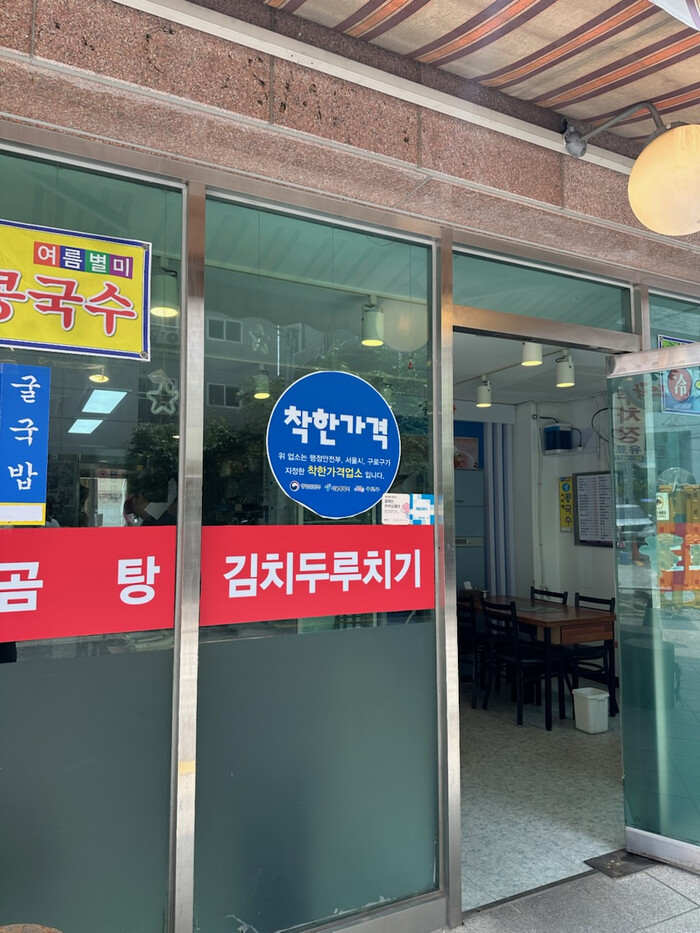 | ▲ 구로구에 있는 한 식당에 ‘착한가격업소’를 표시하는 푯말이 붙어 있다. (사진=구로구청 제공) |