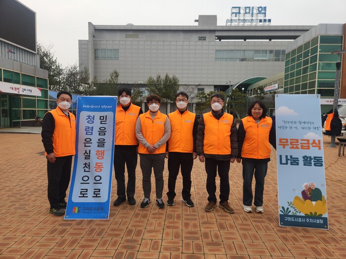 [구미=박병상 기자] 경북 구미도시공사는 지난 4일(월)에 대한민국 써포터즈 봉사단이 매주 월요일 구미역 후면광장에서 지역 어르신들을 위해 진행하는 무료급식 봉사활동에 함께 참여했다.