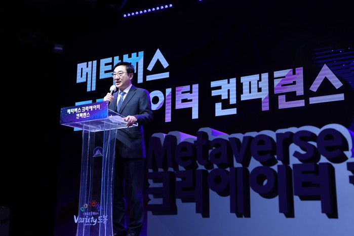 | ▲ 메타버스 크리에이터 컨퍼런스에 참석한 이동진 구청장이 발언하고 있다. (사진제공=도봉구청) |