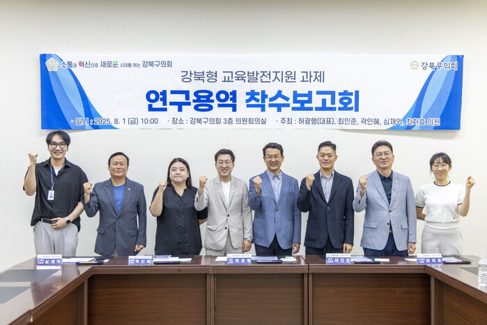[시민일보 = 문민호 기자] 서울 강북구의회(의장 김명희) 의원연구단체인 ‘강북형 교육발전지원 연구회’는 지난 1일 의회 3층 의원회의실에서 강북형 교육발전지원 과제 도출을 위한 정책연구용역 착수보고회를 개최했다.