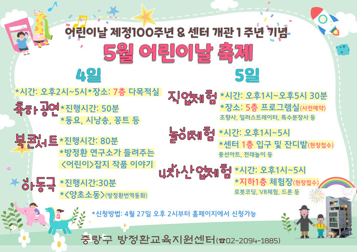 | ▲ 방정환 교육지원센터 어린이날 축제 포스터.(사진제공=중랑구청) |