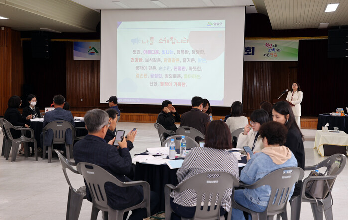 | ▲ 인구감소지역 대응 기본계획 영암군민 의견수렴 원탁토론회 진행 모습. (사진=영암군청 제공) |