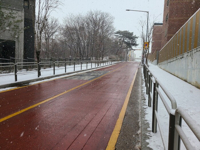 | ▲ 열선 시스템이 설치된 도로. (사진=강동구청 제공) |