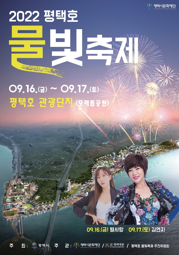 이번 평택호 물빛축제는 코로나 19로 인해 4년 만에 개최되는 만큼 체험·시민참여 프로그램, 각종 이벤트, 버스킹, 공연, 주민자치 먹거리까지 다양한 즐길거리들을 준비 중에 있다. 특히 김연자, 별사랑 등 초대가수 축하공연과 아름다운 불꽃놀이가 축제의 흥을 돋울 예정이다.