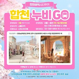 한편 ‘합천누비GO’는 2023년 상반기 진주.대구 간 당일투어, 하반기에 서울 간 1박 2일 투어를 진행해 600여명이 참여한 후 많은 호응을 얻은 바 있다.