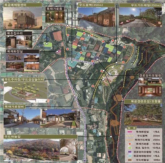 시는 2023년부터 4년간 50억원(국비 25억, 지방비 25억)의 사업비를 투입하여 수동 수암골 일원에 목재특화거리와 목공체험센터를 조성하고 목재활용 교육 및 체험 프로그램을 운영할 계획이다.