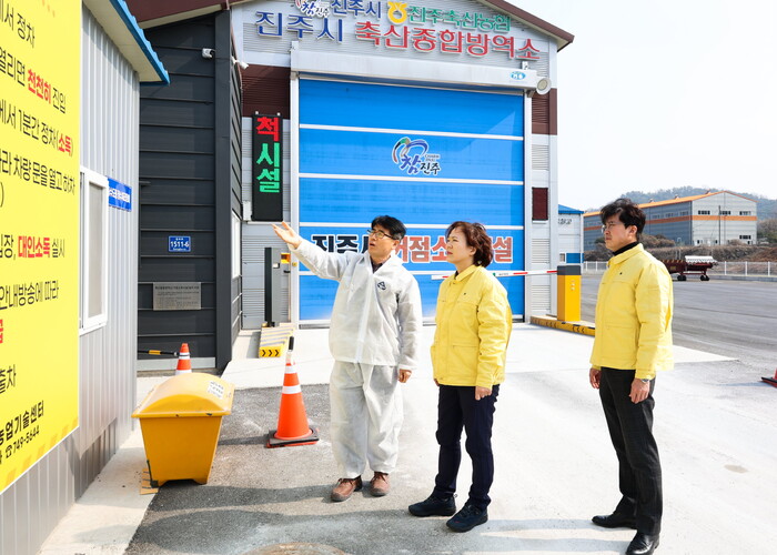 진주시는 지난 11일 고병원성 조류인플루엔자(AI)와 아프리카돼지열병(ASF) 위기경보 ‘심각’ 단계로 가축전염병 차단 방역을 위해 진성면 소재 축산종합방역소 방역 현장을 점검했다.