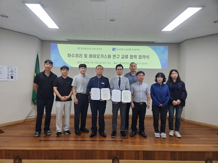[광주=정찬남 기자] 광주환경공단(이사장 김병수)은 조선대학교 첨단에너지공학과(학과장 장일식)와 ‘하수처리 및 바이오가스 공동연구’를 위한 업무협약을 지난 19일 체결했다.