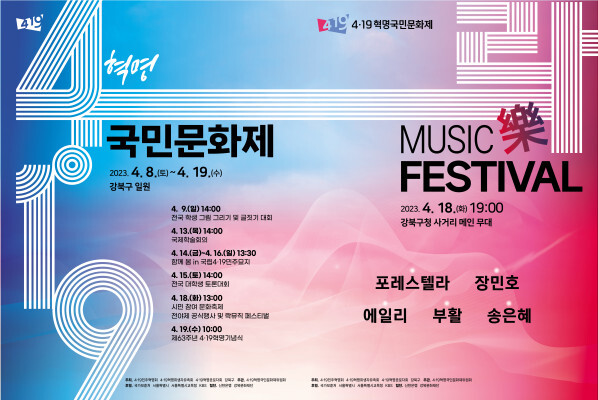 [시민일보 = 홍덕표 기자] 서울 강북구(구청장 이순희)가 구 대표 문화행사인 '제11회 4.19혁명국민문화제'를 이달 8~19일 구 일원에서 개최하고 있다.