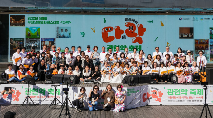 | ▲ 부천시 생활문화예술동호회원들이 지난해 9월 부천생활문화페스티벌 '다락' 무대에 모여 기념사진을 촬영하고 있다. (사진=부천시청 제공) |