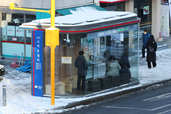 | ▲ 겨울철 한파 피해 저감시설인 성동형 스마트쉼터의 모습. (사진=성동구청 제공) |