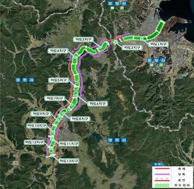 특히, 지난해 7월 한화진 환경부 장관이 냉천 피해복구 현장을 방문했을 당시 하천퇴적으로 인한 통수단면 부족으로 홍수에 취약함을 강력히 어필하는 등 사업의 시급성을 설명하였고, 이에 한 장관으로부터 형산강의 준설이 필요한 구간에 대해 정비사업을 추진하겠다는 약속을 받은 바 있다.