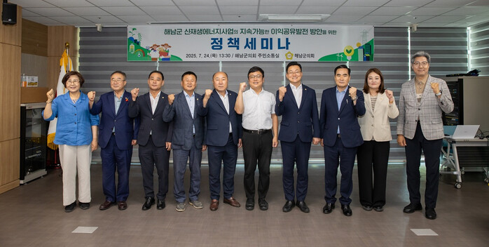 [해남=정찬남 기자] 전남 해남군의회가 최근 군의회 주민소통실에서 군의원, 관계전문가 30명과 함께 ‘해남군 신·재생에너지산업의 지속가능한 이익공유 발전방안을 위한 정책세미나’를 개최했다.