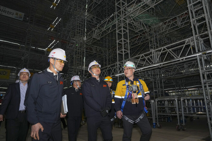 이날 최민철 본부장은 야드투어를 통해 작업 현장을 살피고, 안벽에서 건조 중인 LNG운반선에 승선해 안전 관리 현황을 점검했다.