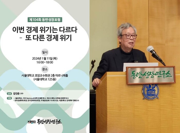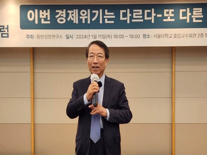 2024년 새해 첫 포럼인 이번 포럼에서는 김인준 서울대 명예교수가 ‘이번 경제위기는 다르다 – 또 다른 경제위기’라는 주제로 발표했다. 김 교수는 한국금융학회 회장, 한국경제학회 회장, 국제금융센터 이사회 의장 등을 역임한 한국 경제계 대표적인 학자로 손꼽힌다.