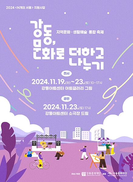 [시민일보 = 이대우 기자] 강동문화재단(이사장 이수희)은 지역문화와 생활예술 활성화를 위해 ‘강동, 문화로 더하고 나누기’ 축제를 오는 19일(화)부터 23일(토)까지 강동아트센터에서 개최한다고 밝혔다.