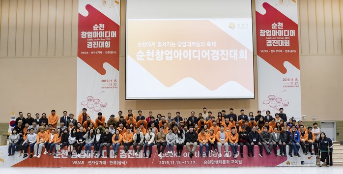 | ▲ 2019년 열린 순천창업아이디어경진대회 참여자들이 기념촬영을 하고 있다. (사진제공=순천시청) |