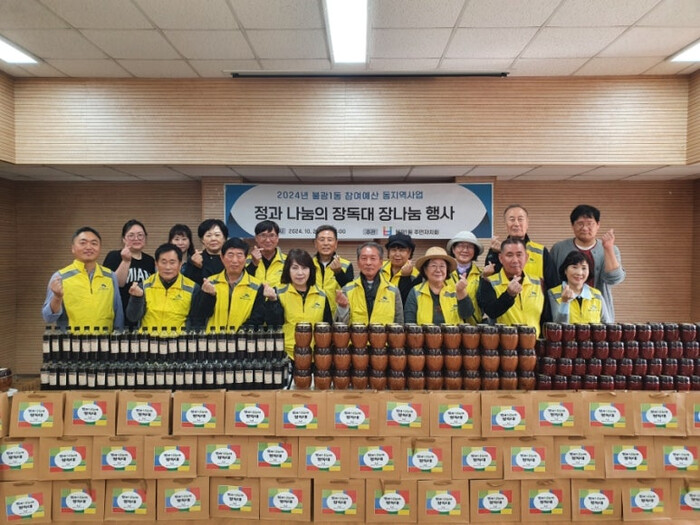 이날 행사에는 불광1동 주민자치회 위원과 주민 30여 명이 참가했으며, 지난 2월에 담가 숙성된 된장, 간장, 고추장을 포장하고 동주민센터를 통해 도움이 필요한 소외계층 200가구에 전달했다.