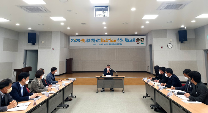 [산청=이영수 기자] (재)산청세계전통의약항노화엑스포조직위원회는 22일 동의보감촌 주제관 다목적실에서 공동위원장 이승화 산청군수 주재하에 2023산청세계전통의약항노화엑스포의 성공적인 행사를 위한 추진대책 보고회를 가졌다고 밝혔다.