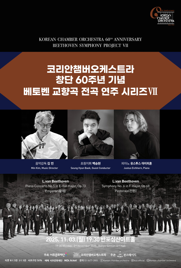 이 협력을 바탕으로 진행되는 첫 공동 프로젝트는 KCO 창단 60주년 기념 ‘베토벤 교향곡 전곡 연주 시리즈’ 중 일곱 번째 무대다. 이번 공연에서는 베토벤 피아노 협주곡 제5번 ‘황제(Emperor)’와 교향곡 제6번 ‘전원(Pastorale)’이 반포심산아트홀에서 연주된다.