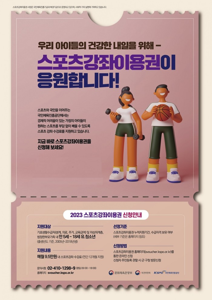 지원 대상은 국민기초생활 보장법에 따른 생계, 의료, 주거, 교육급여 수급가구 또는 차상위계층, 법정 한부모 지원 가정에 속한 만5세~18세 유·청소년과 만19세~64세 장애인이다.