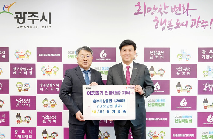30일 시에 따르면 이날 (주)경기고속은 온누리상품권 1만원권 1200매(1200만원 상당), 광주시충청향우연합회에서는 백미 10㎏ 19포(58만원 상당), 경기광주전기공사협의회는 성금 300만원을 각각 전달했다.