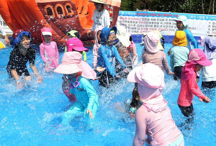 [시민일보 = 이대우 기자] 꿈이 모이는 도시, 미래를 그리는 서울 강남구(구청장 조성명) 세곡동주민센터 앞마당에서 지난 14일 열린 물놀이장에서 아이들이 시원한 물놀이를 즐기며 무더위를 쫓고 있다.