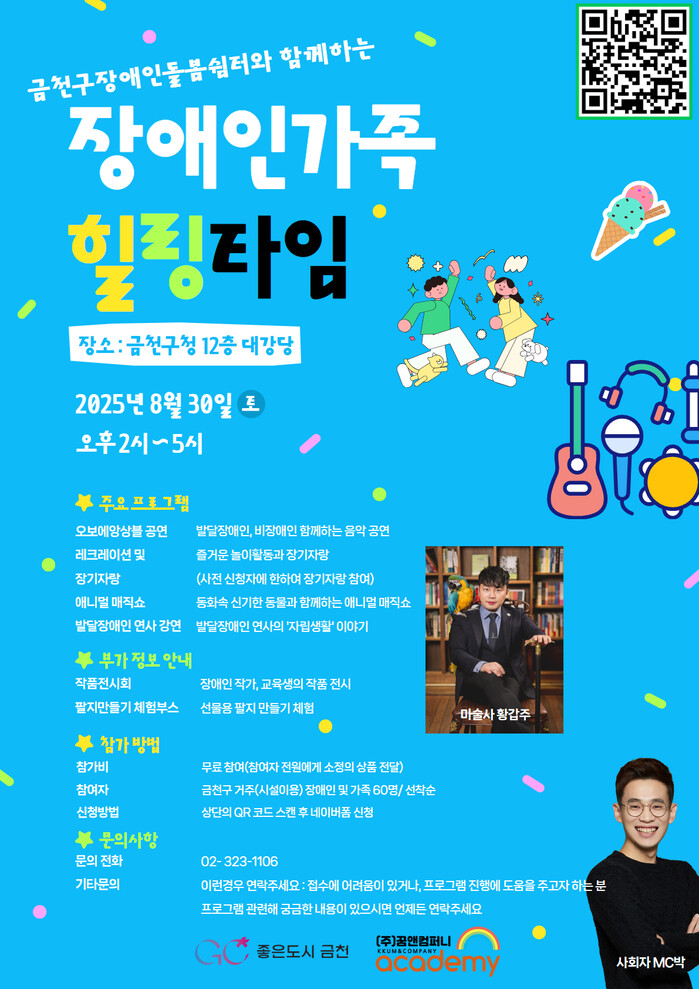행사 참석을 원하면 홍보 포스터의 QR코드를 이용해 인터넷으로 신청할 수 있다. 구는 관내 장애인과 그 가족 중 60명을 모집할 예정이다. 참석자는 선착순 모집이다.