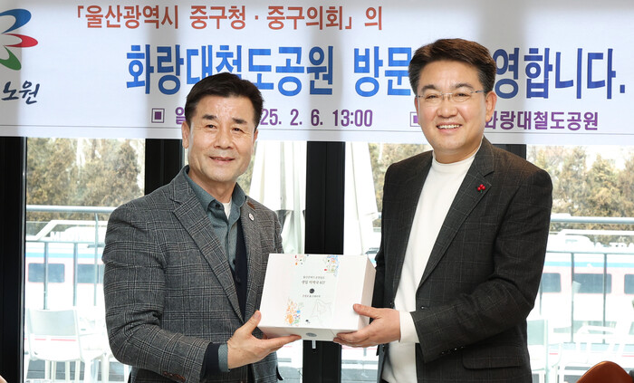 [시민일보 = 박소진 기자] 노원구(구청장 오승록)는 최근 김영길 울산 중구청장과 박경흠 중구의회 의장을 비롯한 울산 중구청 관계자 27명이 벤치마킹을 위해 화랑대철도공원(노원기차마을, 기차카페, 화랑대 역사관)을 방문했다고 7일 밝혔다.