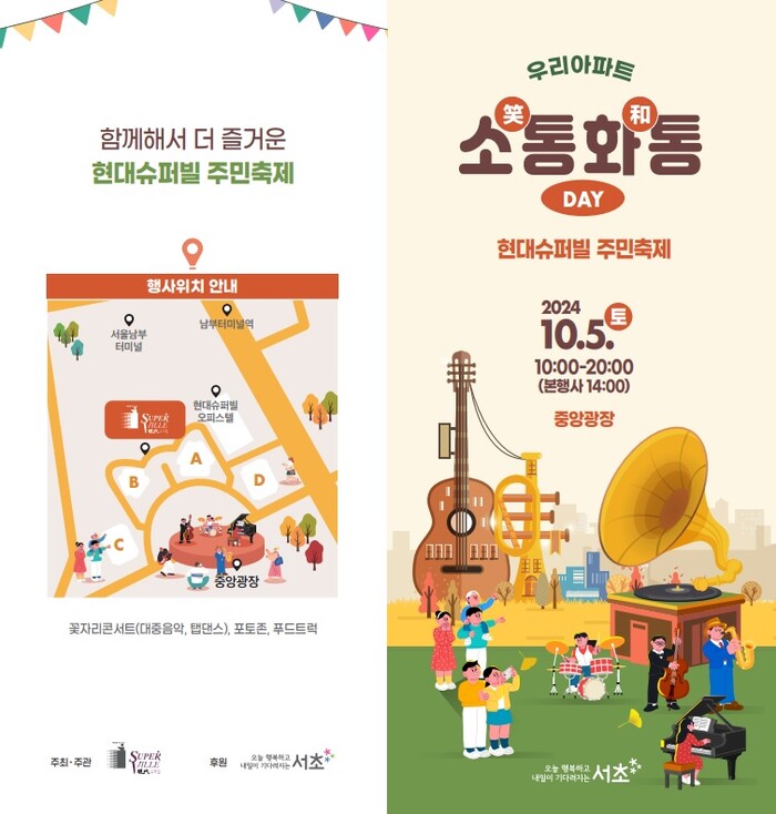 | ▲ ‘우리 아파트 소(笑)통·화(和)통 Day’ 현대슈퍼빌 주민축제 포스터. (사진=서초구청 제공) |