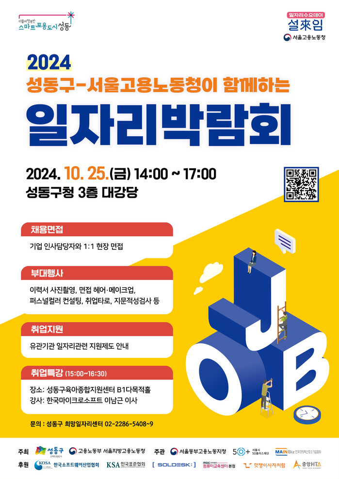 이번 일자리박람회는 사전 신청 절차 없이 누구나 참여 가능하며, 기타 궁금한 사항은 성동구 희망일자리센터로 문의하면 된다.