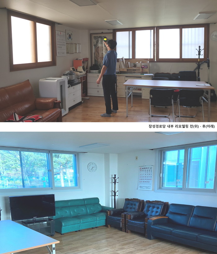 | ▲ 사진제공=고양시청/장성경로당 내부 리모델링 전·후. |