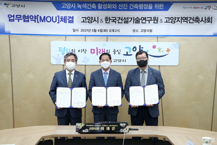 지난해 5월 시는 한국건설기술연구원·고양지역건축사회와 ‘고양시 녹색건축물 조성 활성화 업무협약’을 체결, 고양시 내 녹색건축 조성 기반을 구축하고 기술 개발을 위해 상호 협력하기로 했다.