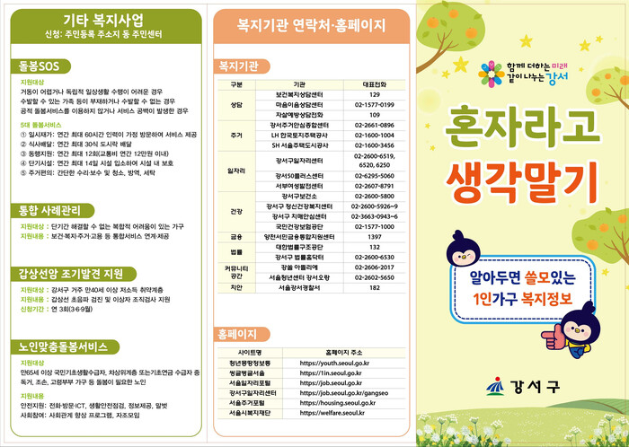 | ▲ ‘혼자라고 생각말기’ 리플릿. (사진=강서구청 제공) |