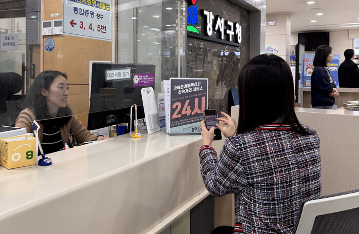| ▲ ‘가족관계등록신고 24시 처리 서비스’ 신청 창구. (사진=강서구청 제공) |