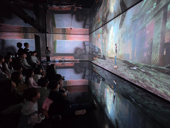 | ▲ 괴산군 청소년 체험단이 넷마블게임박물관 체험을 하고 있다. (사진=구로구청 제공) |