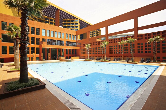 사계절 상시 운영 중인 호텔 지하 1층에 위치한 실내수영장은 오전 6시 반부터 오후 9시 반까지 이용 가능하며, 야외수영장(A)는 오전 9시부터 오후 9시까지 운영된다. 야외수영장(B)의 운영 시간은 오전 9시부터 오후 8시까지다.