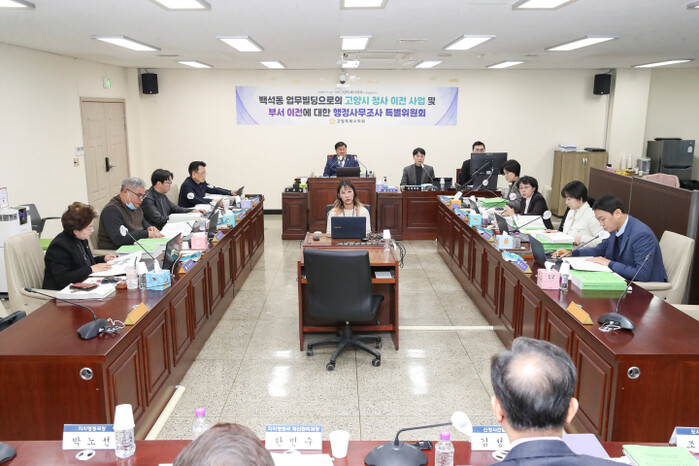 [시민일보 = 민장홍 기자] 경기 고양시의회의 ‘백석동 업무빌딩으로의 고양시청사 이전사업 및 부서이전에 대한 행정사무조사 특별위원회(이하 행정사무조사특위)’가 최근 제4차 회의를 열고 고양시 집행부로부터 업무 보고를 받았다.