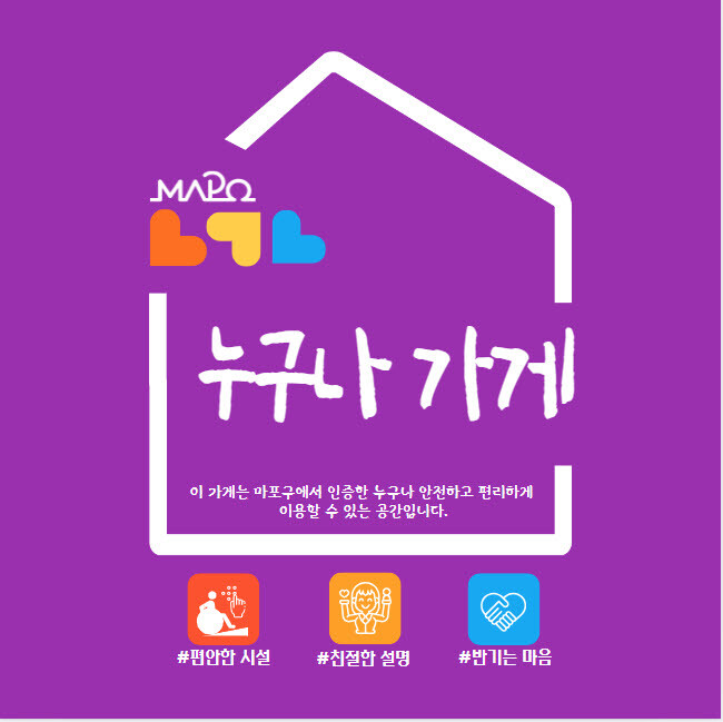 [시민일보 = 여영준 기자] 마포구(구청장 박강수)는 무장애 상권 조성을 위해 장애인 이용 편의를 높이는 ‘누구나 가게’ 인증 사업을 시작했다고 15일 밝혔다.