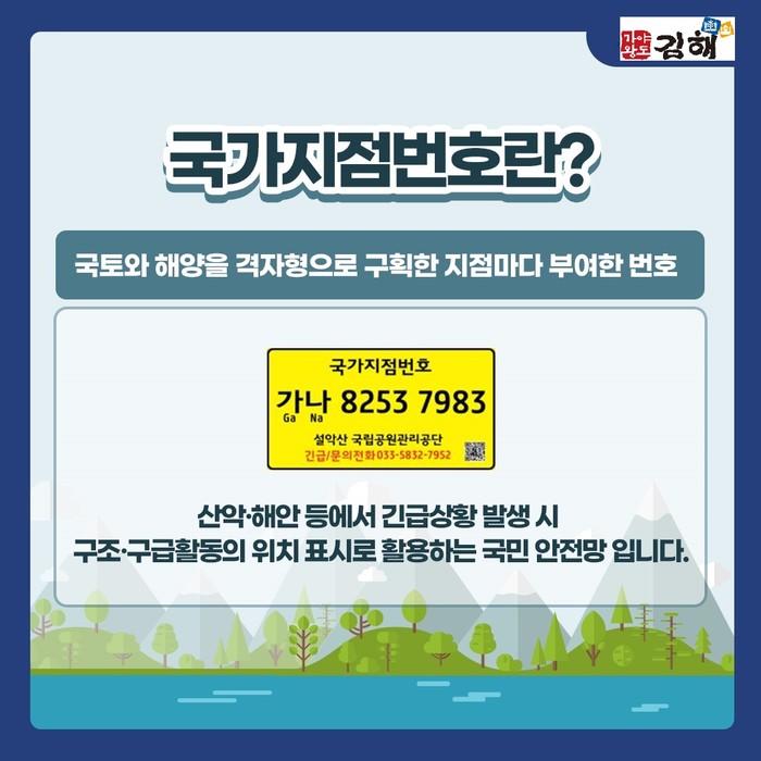 시 관계자는 “국가 지점 번호판은 산악 지역 등 도로 명 주소가 부여되어 있지 않은 지역에서 위급 상황 발생 시 노란색 국가 지점 번호판을 보고 신고하면 정확한 위치 정보를 전달해 신속한 출동과 구조가 가능하며 국가 지점 번호판을 매년 철저히 조사하고 정비해 시민의 소중한 생명과 안전을 지키는 데 최선을 다 하게 다”고 밝혔다.