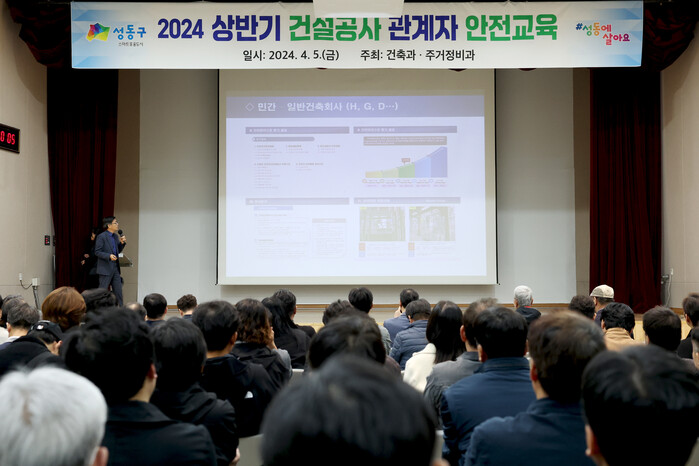 [시민일보 = 박소진 기자] 성동구(구청장 정원오)가 8일 성동구청 대강당에서 관내 건설공사 관계자를 대상으로 건설공사장 내 재난사고 예방 및 안전의식 개선을 위한 교육을 실시한다.