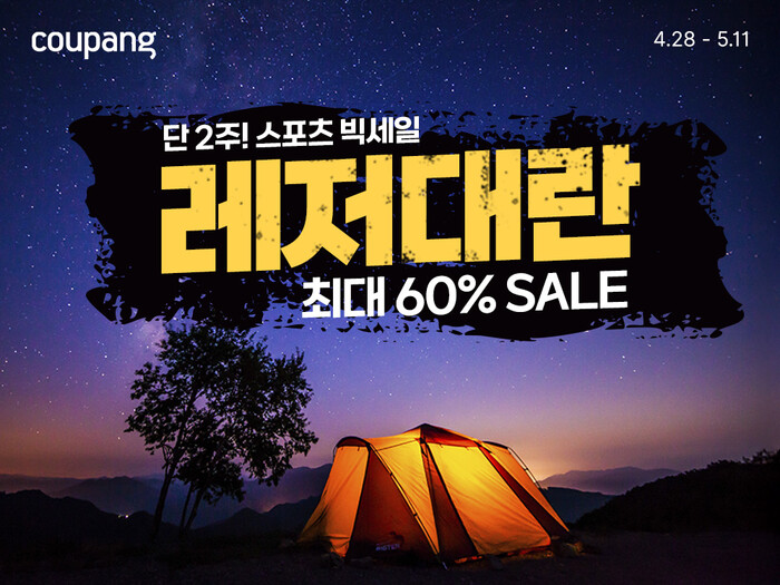 [시민일보 = 문민호 기자] 쿠팡은 인기 스포츠·레저 용품을 최대 60%대 할인하는 ‘레저대란’ 기획전을 내달 11일까지 진행한다고 30일 밝혔다.