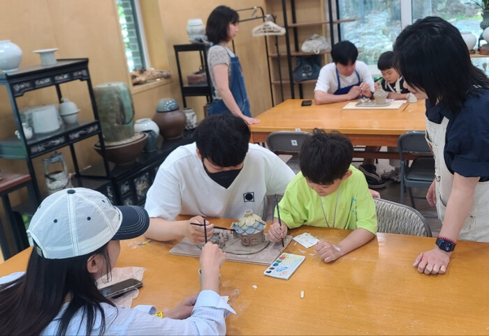 일일체험반에서는 초벌 접시 페인팅, 식기, 화분 등 간단한 도자기 만들기를 경험할 수 있으며, 완성된 작품은 건조·굽기·유약·식힘 등 약 한 달의 과정을 거쳐 수령할 수 있다.