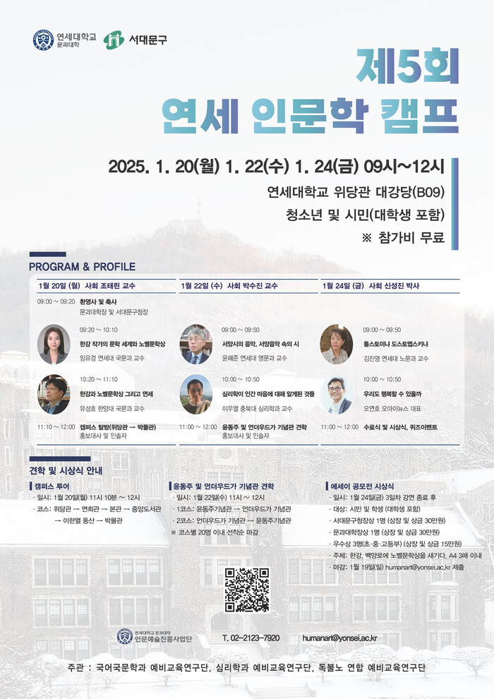 자세한 내용은 연세대학교 문과대학 인문예술진흥사업단으로 문의하면 된다.