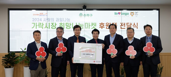 구청사에서 열린 전달식에는 서강석 송파구청장을 비롯하여 서울시농수산식품공사 문영표 사장, 서울청과㈜·㈜중앙청과·동화청과㈜ 대표, 희망나눔마켓 사무총장 등 많은 관계자가 모여 후원을 기념하고, 한마음 한뜻으로 지역사회에 따뜻한 나눔을 펼치려는 의지를 재확인했다.